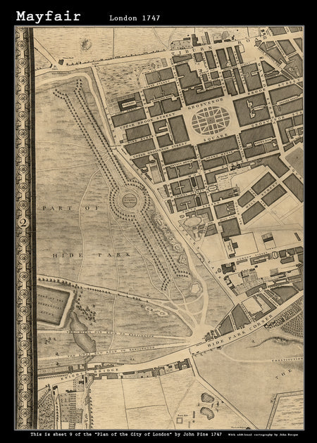 John Rocques New Map of London 1746 Mayfair - Size A2