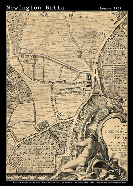 John Rocques New Map of London 1746 Newington Butts - size A2
