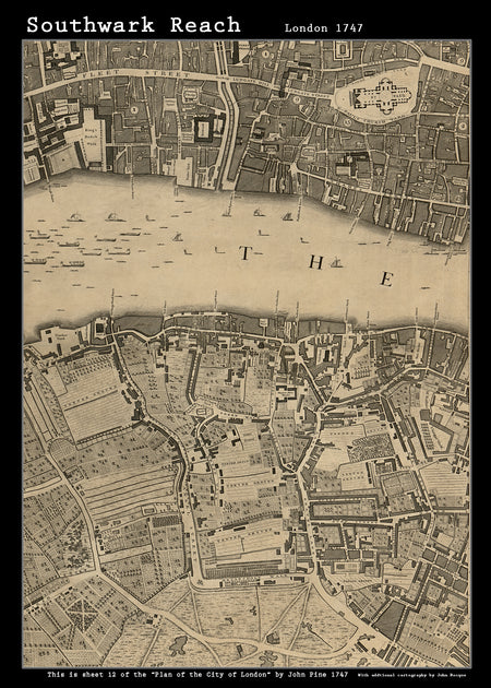 John Rocques New Map of London 1746 Southwark Reach - size A2