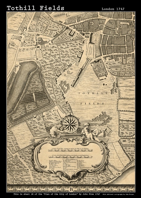 John Rocques New Map of London 1746 Tothill Fields - size A2