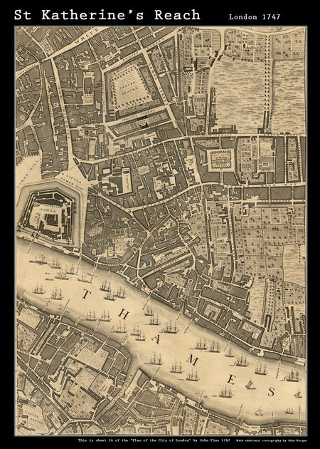 John Rocques New Map of London 1746 St Katherines Reach - size A2