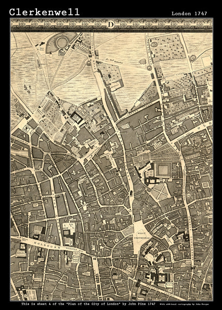 John Rocques New Map of London 1746 Clerkenwell- size A2.