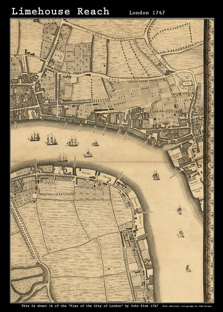 John Rocques New Map of London 1746 Limehouse Reach - size A2